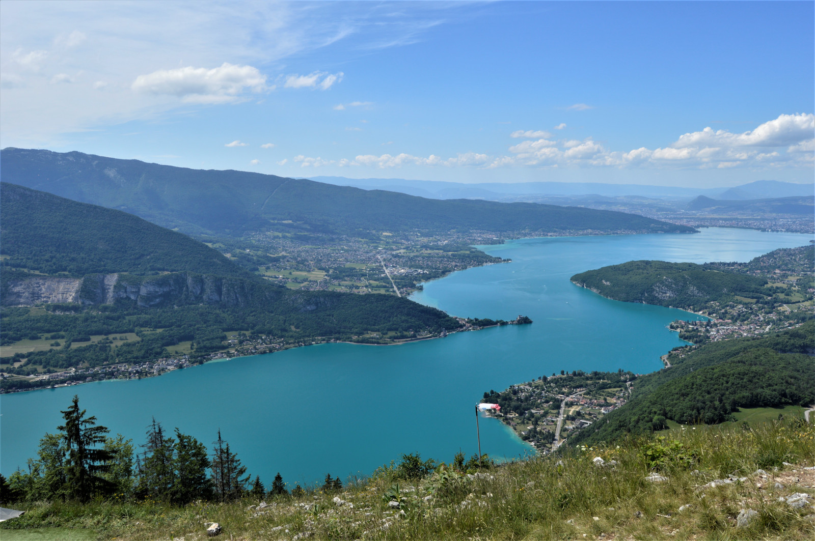 One of the most famous viewpoints in the region is the Col de la Forclaz. Located above the eastern shore of the lake, this mountain pass offers one of the most iconic panoramas in the Alps. It is a popular stop for hikers, cyclists, and paragliders who come to admire the breathtaking view of Lake Annecy and the surrounding mountains.