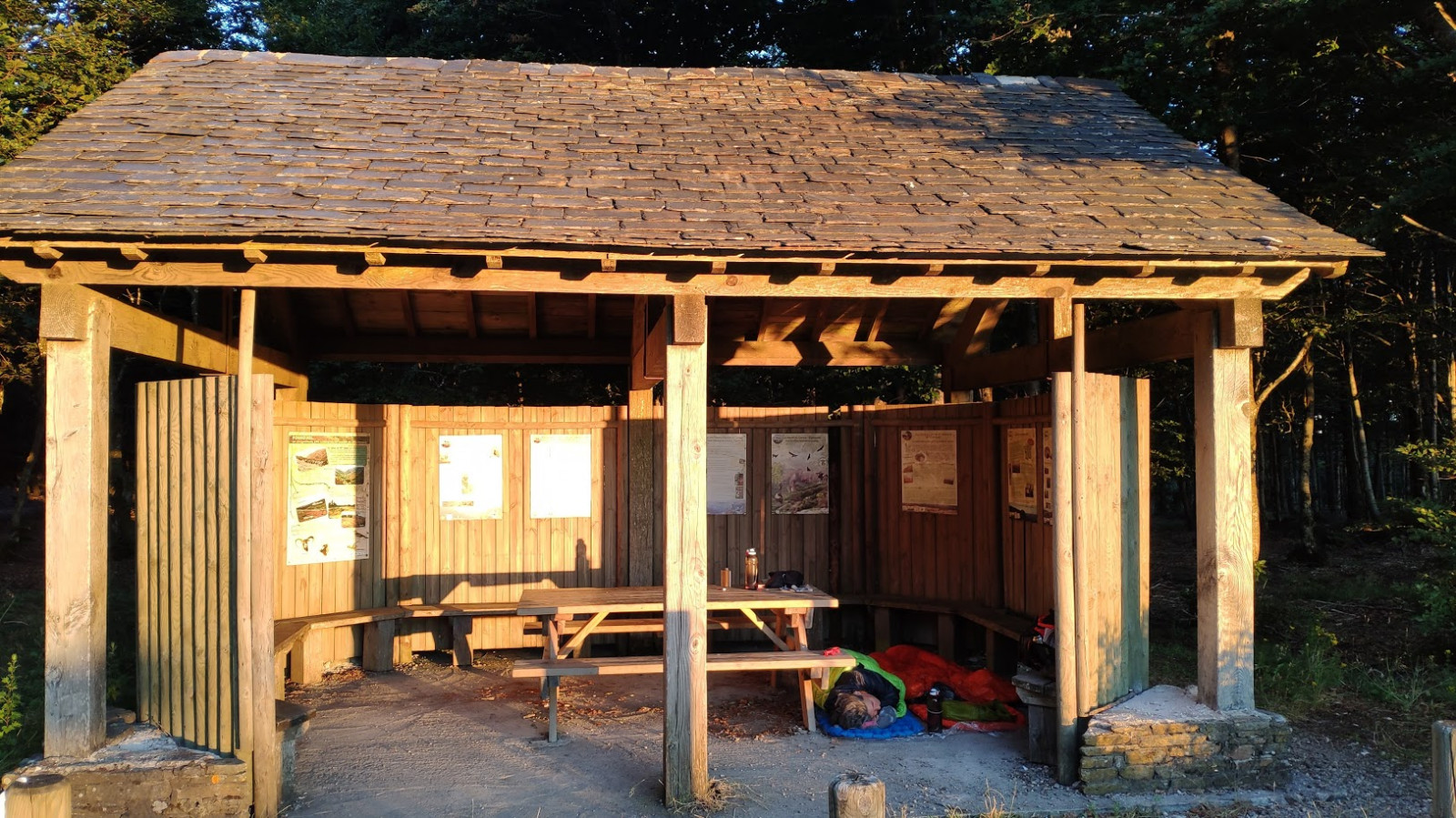dormir là: pratique, à l'abri de la pluie et un peu du vent. Légal. Pas de tente à emporter