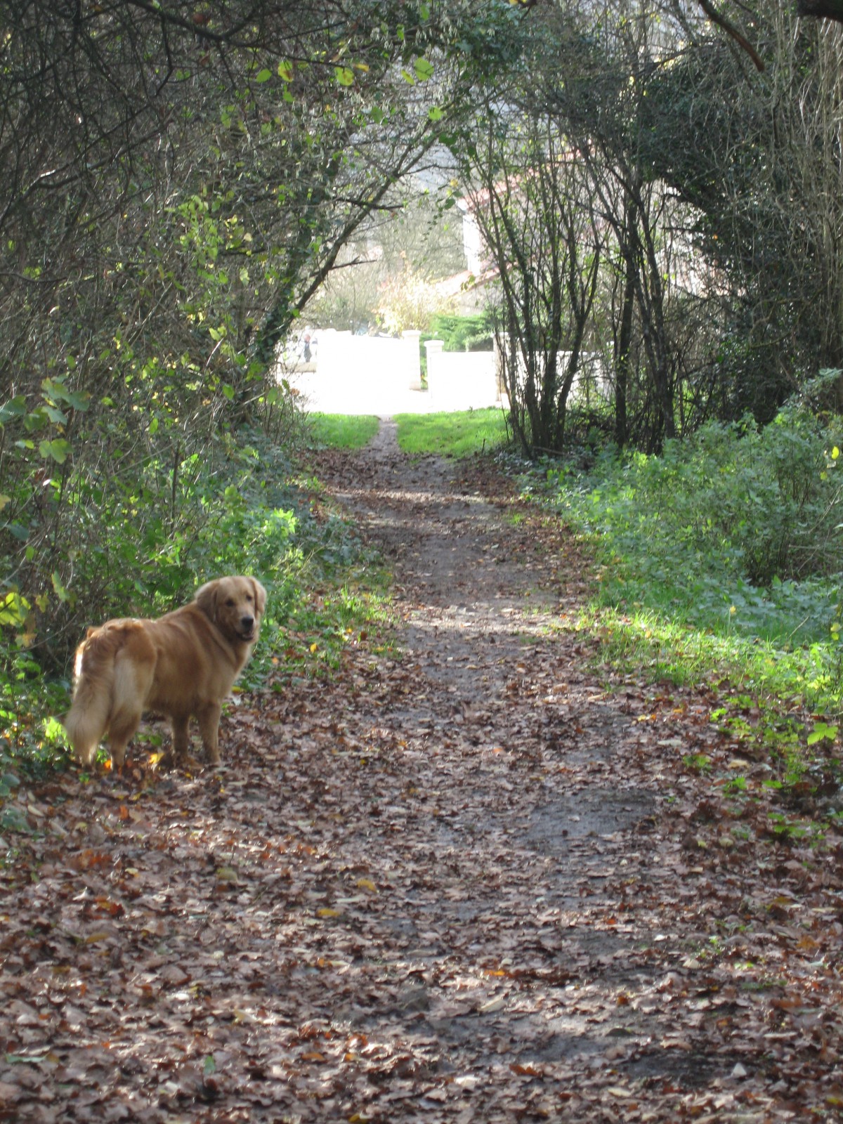 Sortie du sentier en forêt sur les hauteurs de Vazelle