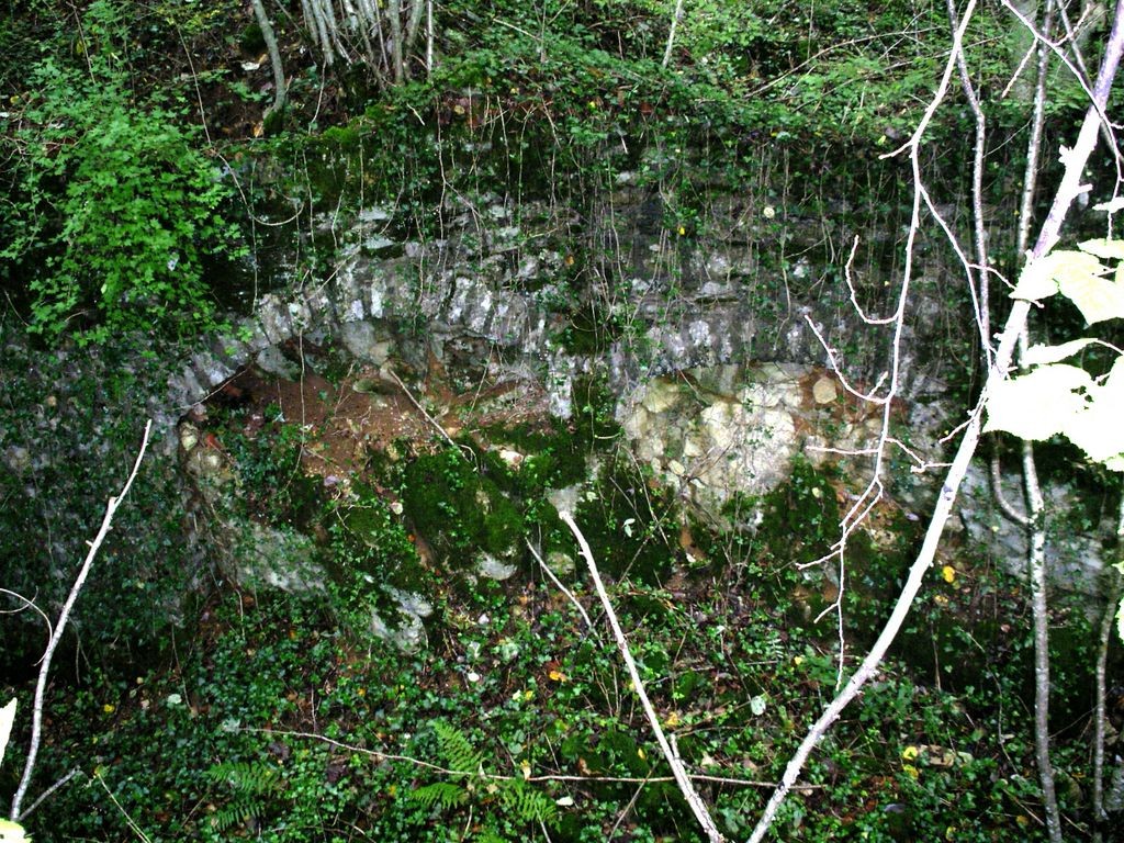 Ouvrage rectangulaire ceinturé d'un fossé.
