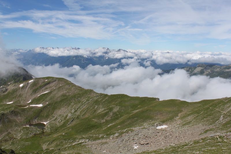 Vue du col du Cheval noir depuis la montée vers le sommet