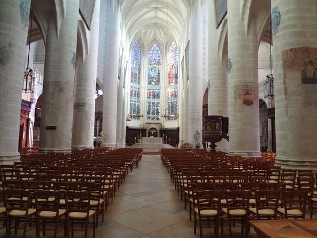 En entrant dans la collégiale Notre-Dame de Dole, on est immédiatement saisi par l’ampleur des volumes : les nefs sont vastes, les voûtes élevées, et l’espace respire la solennité.