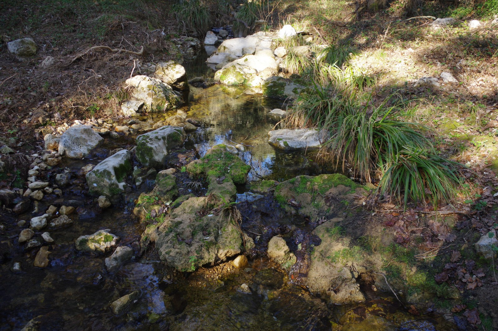 Petit ruisseau que l'on longe rive droite (notez la violence de la crue d'octobre)