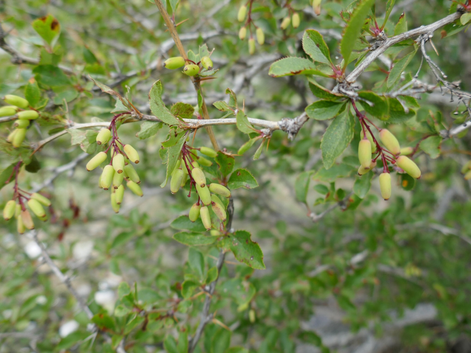 Cet arbuste épineux qu'est l'épine-vinette, produit des baies qui à maturité sont d'un rouge vif, et peuvent être consommées en décoction, étant riches en vitamine C. Pas de chance, la saison n'était pas assez avancée, celles-ci étaient encore d'un vert livide peu engageant.