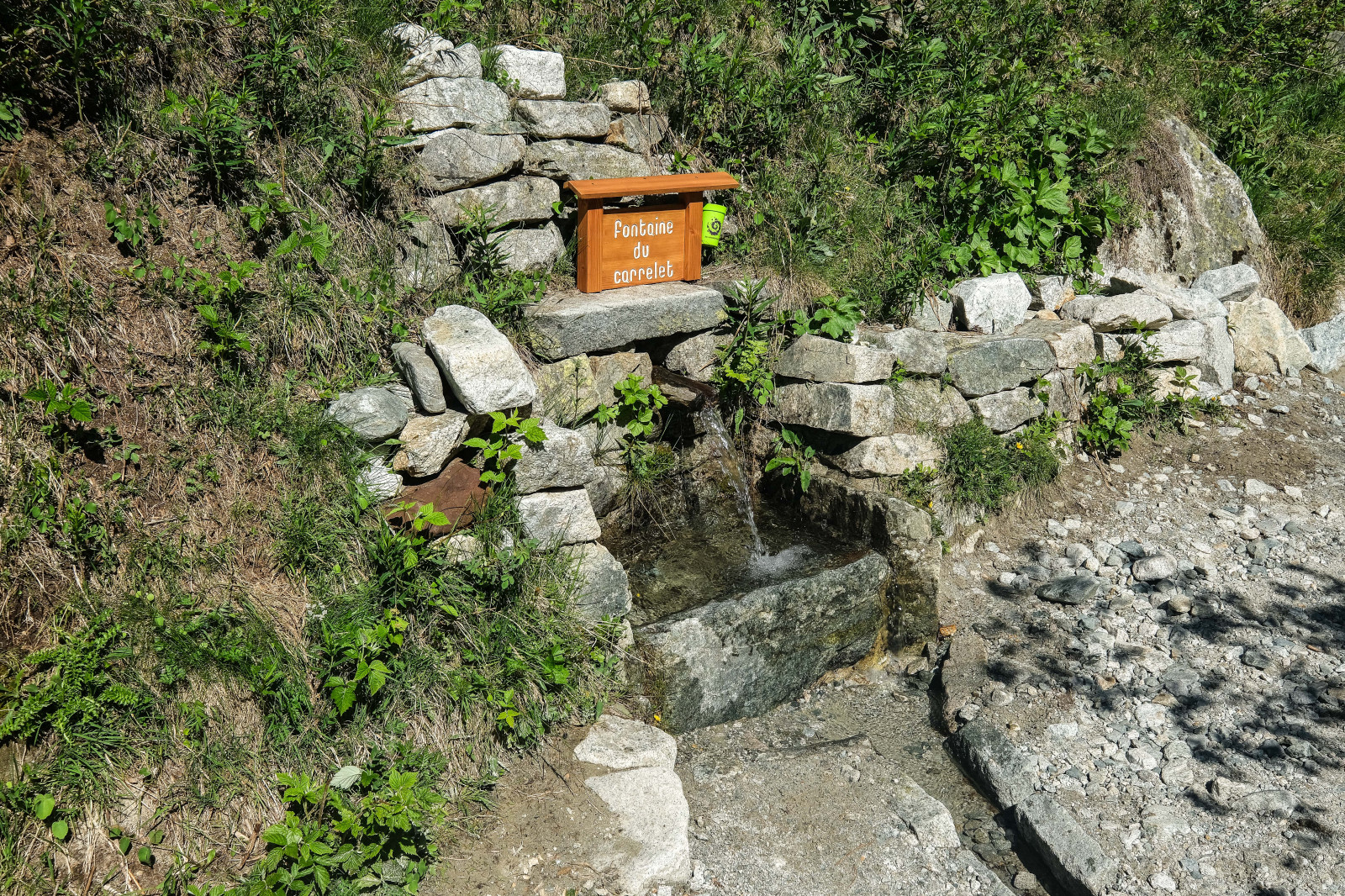 Un peu d'eau bien fraîche, à l'aller comme au retour.... Gobelet siglé du Parc National des Écrins à disposition. (13 juin 2019)