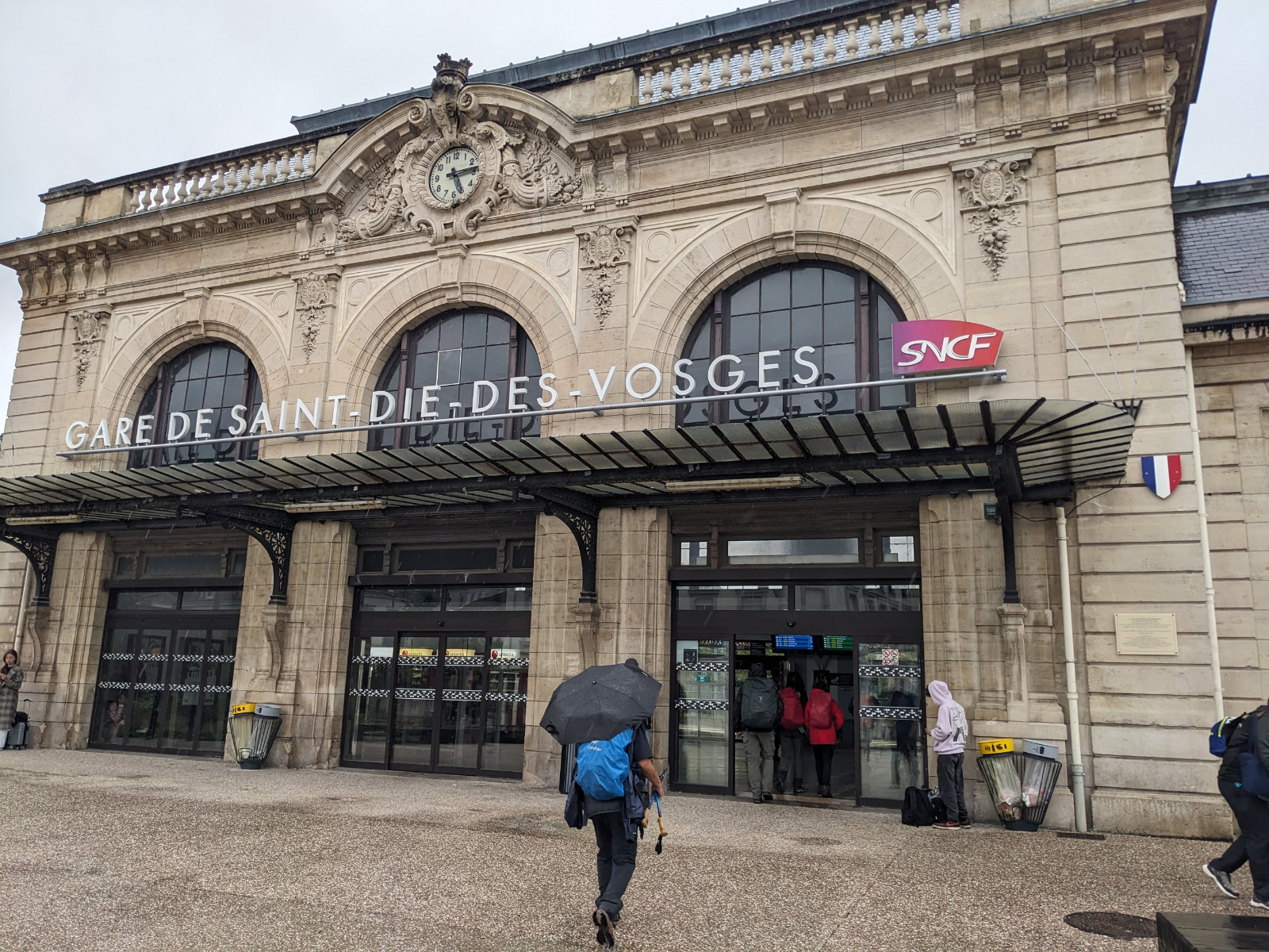 (D/A) Départ et arrivée de la randonnée, la gare dessert Strasbourg par la vallée de la Bruche, Lunéville et Nancy par le Val de Meurthe, et Épinal.