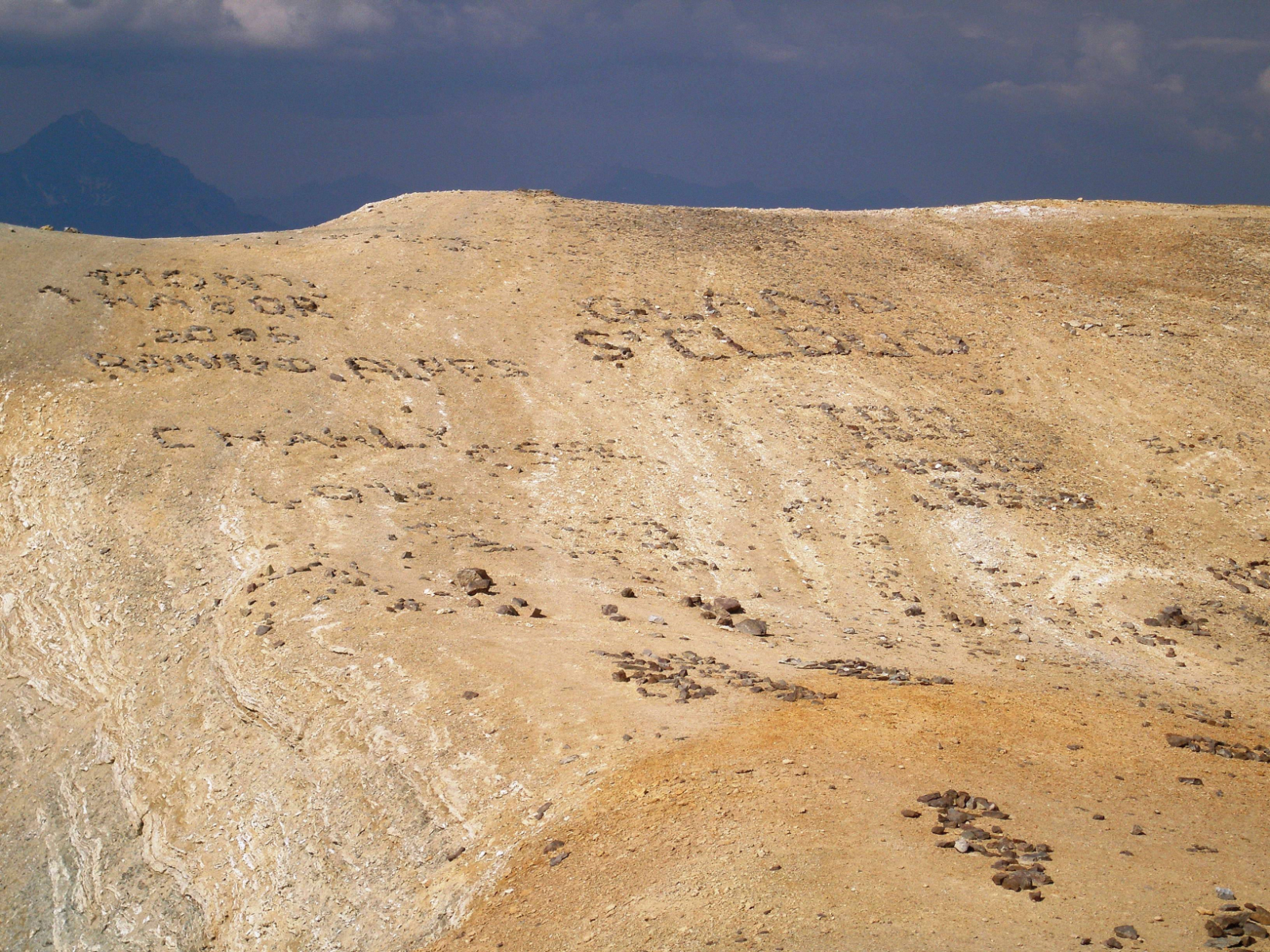 Sur le dôme sommital, des randonneurs italiens et français on écrit leurs noms avec des pierres trouvées sur place. Ca vous tente ?