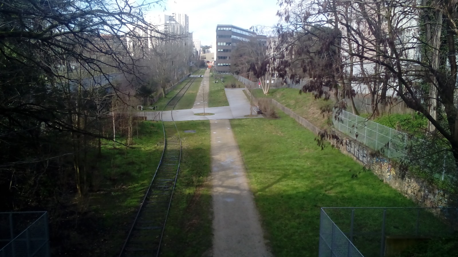 On chemine le long de l'ancienne voie ferrée (mars 2018).