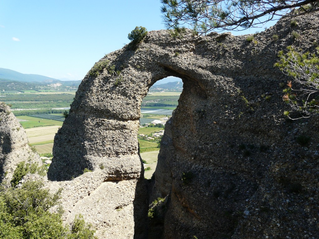 Les Pénitents présentent de multiples formes aux yeux des randonneurs, ici une arche qui relie deux de ces curiosités de la nature.