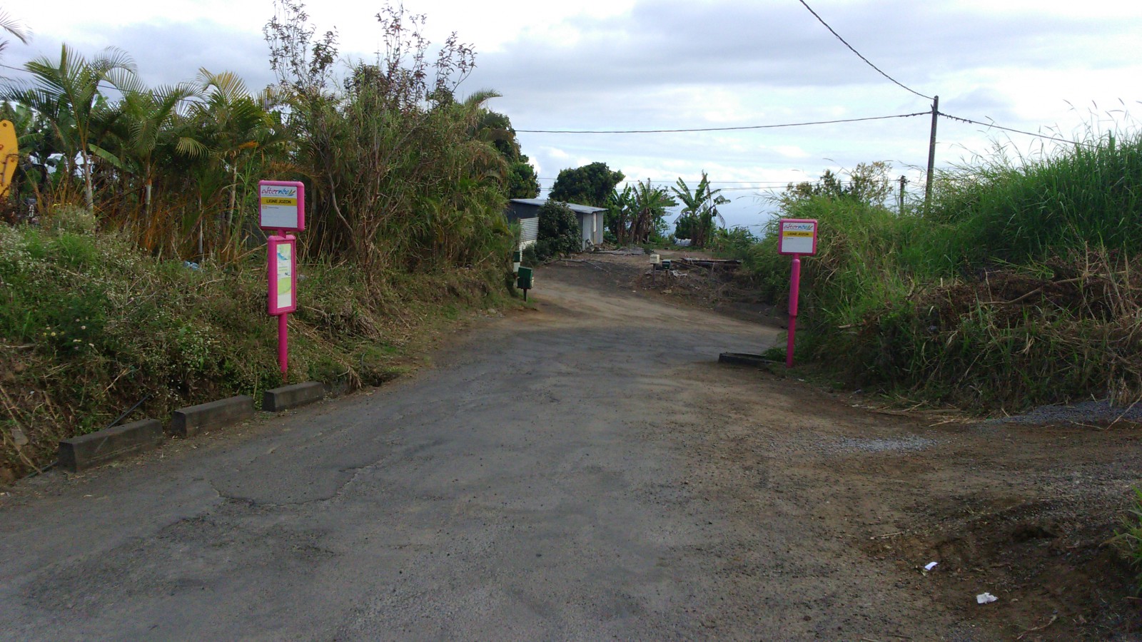 L'arrêt de bus de la Ligne Jozon. Tout de suite après, prendre le chemin de terre à gauche (20)