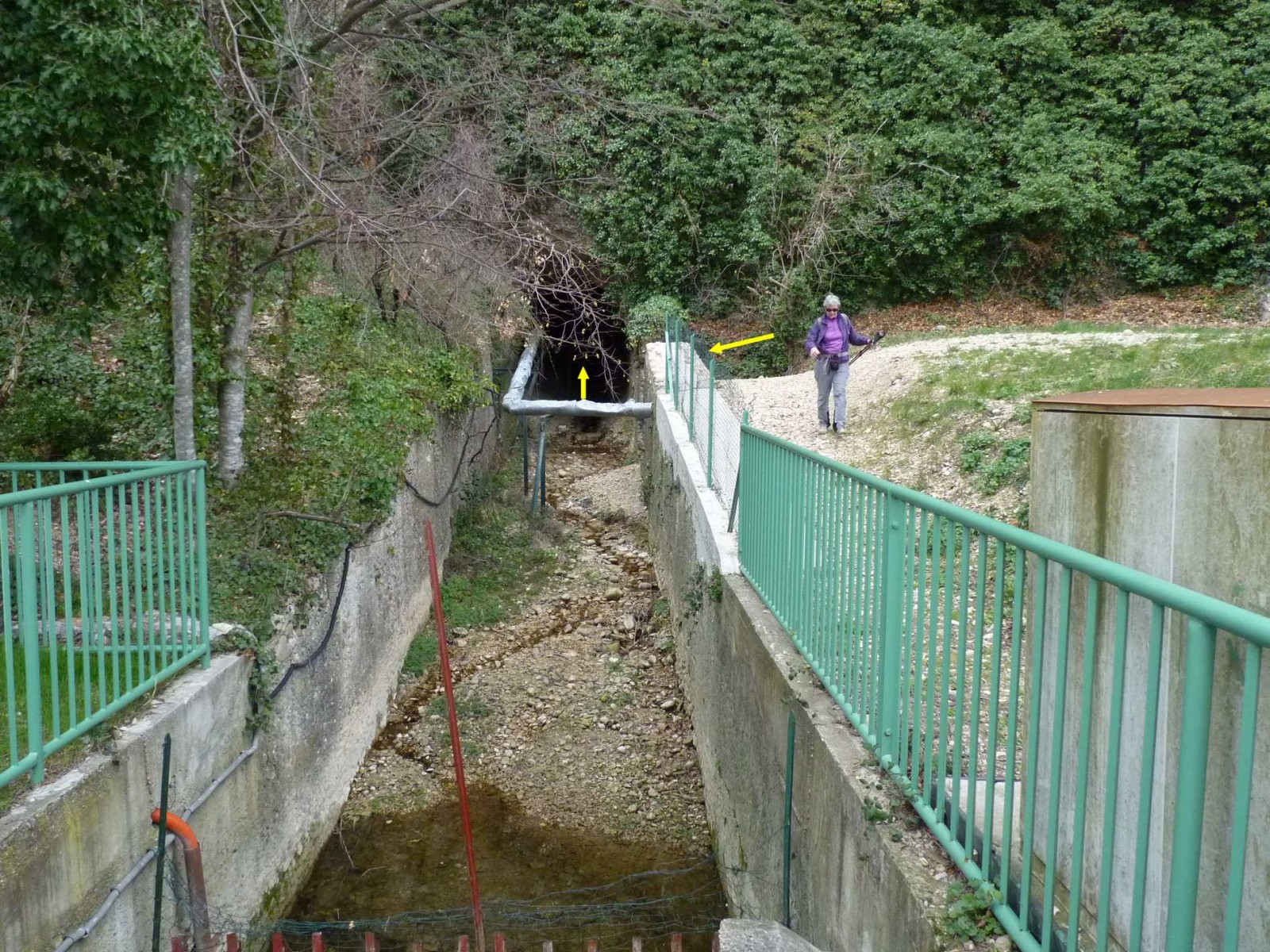 L'entrée se fait au bout du mur sans difficulté pour ce coté ci. L'autre extrémité se situe derrière la digue en haut du camping.