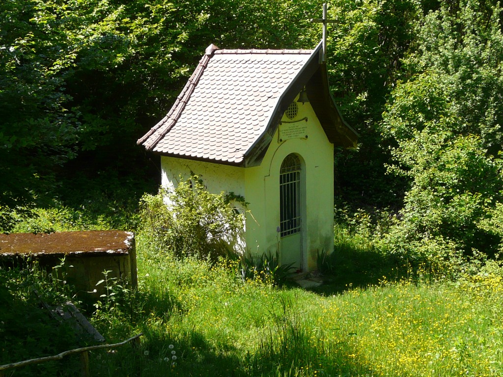La petite chapelle de l'Epinouze bien protégée au milieu des châtaigniers attend les pèlerins pour un repos bien mérité.
