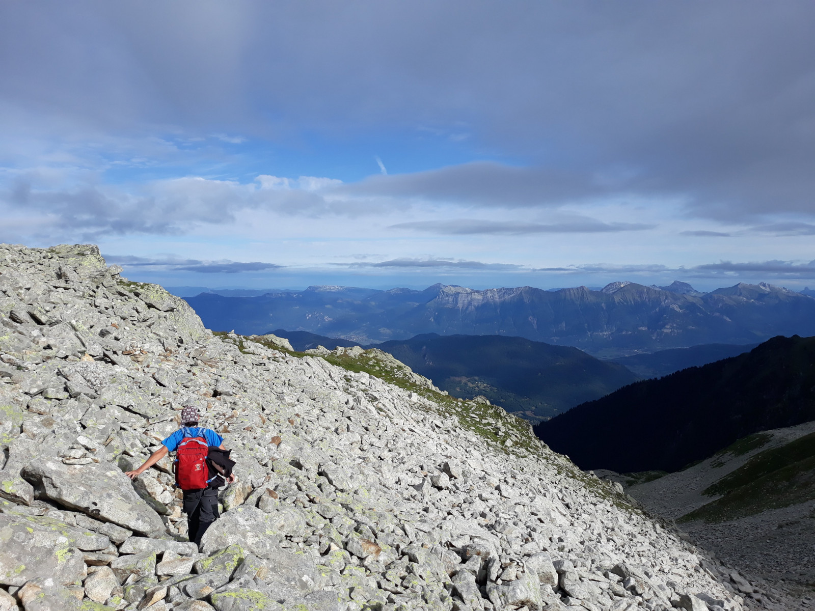 Quelques mètres de digression plein sud après être arrivés au col de Sarvatan pour explorer un peu le point de vue de ce côté (direction col de Montjoie), car nous ne redescendrons pas par là.