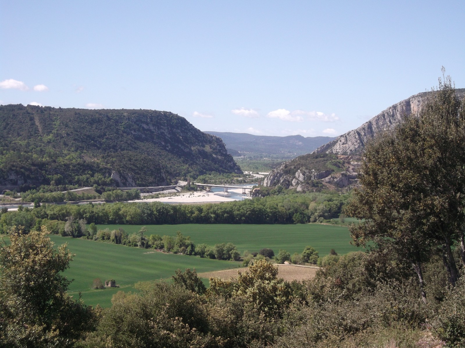 Au sommet des Eburettes, vue sur le pont et la Durance.