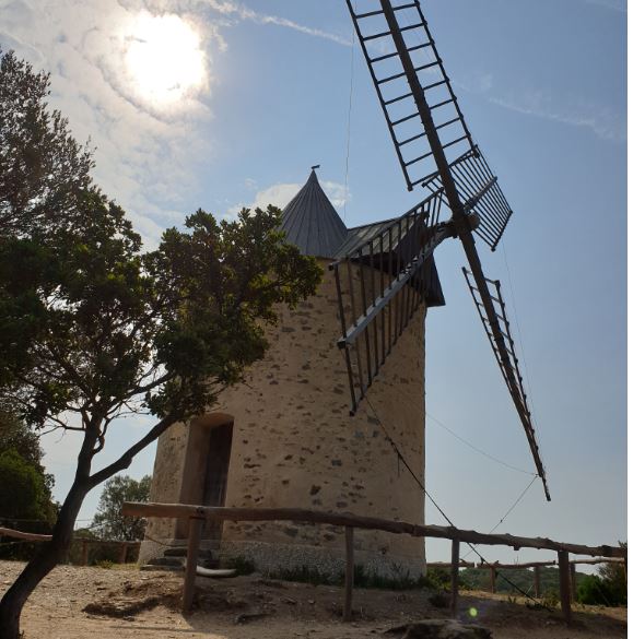 Plusieurs mythes planent autour du nom de ce moulin. L'un entre eux dit que c'était le point de rendez-vous entre les soldats présents sur l'île et les porquerolaises. Les amants se retrouvent au pied du moulin, on l'appela le moulin du bonheur. Le moulin à vent est visitable, puisque des visites guidées sont organisées pour vous faire découvrir l'histoire et le mécanisme de ce « Moulin-tour » à vent du début du 18e siècle.