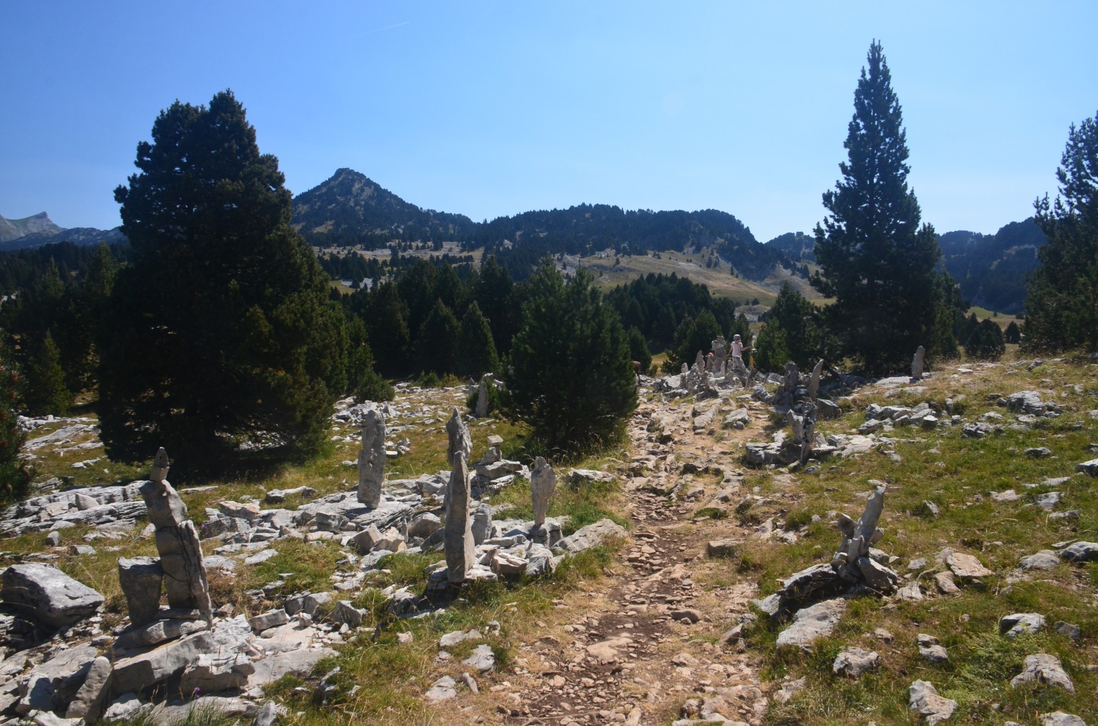 Des enfants passent devant moi accompagnés de leurs parents et deux ânes (sic): question de la plus petite: "ben alors, ça pousse tout seul les cairns? tu vois, ils sont debouts au départ, et pis après ça se couche et les pierres s'entassent au dessus"