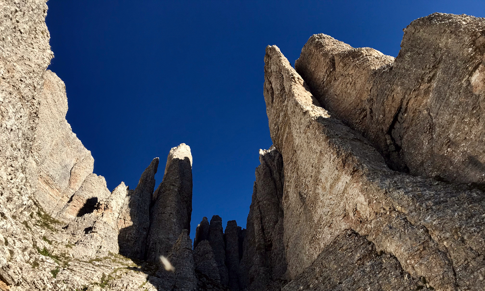La falaise du Petit Obiou est ornée de nombreux «cierges» qui se découpent dans le ciel.