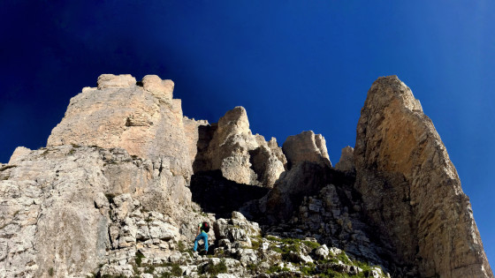 Trois photos sphériques (4π sr) illustrent cette randonnée: au-dessus de la Combe du Petit Obiou, au sommet Est secondaire du Grand Obiou et au sommet Ouest principal du Grand Obiou.