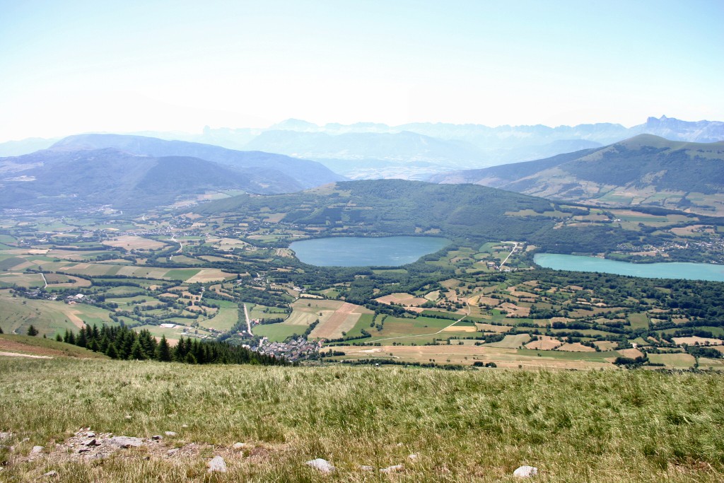 Dans la montée vue sur le lac de Pierre-Châtel et de Petichet. A l'arrière la chaîne du Vercors.
