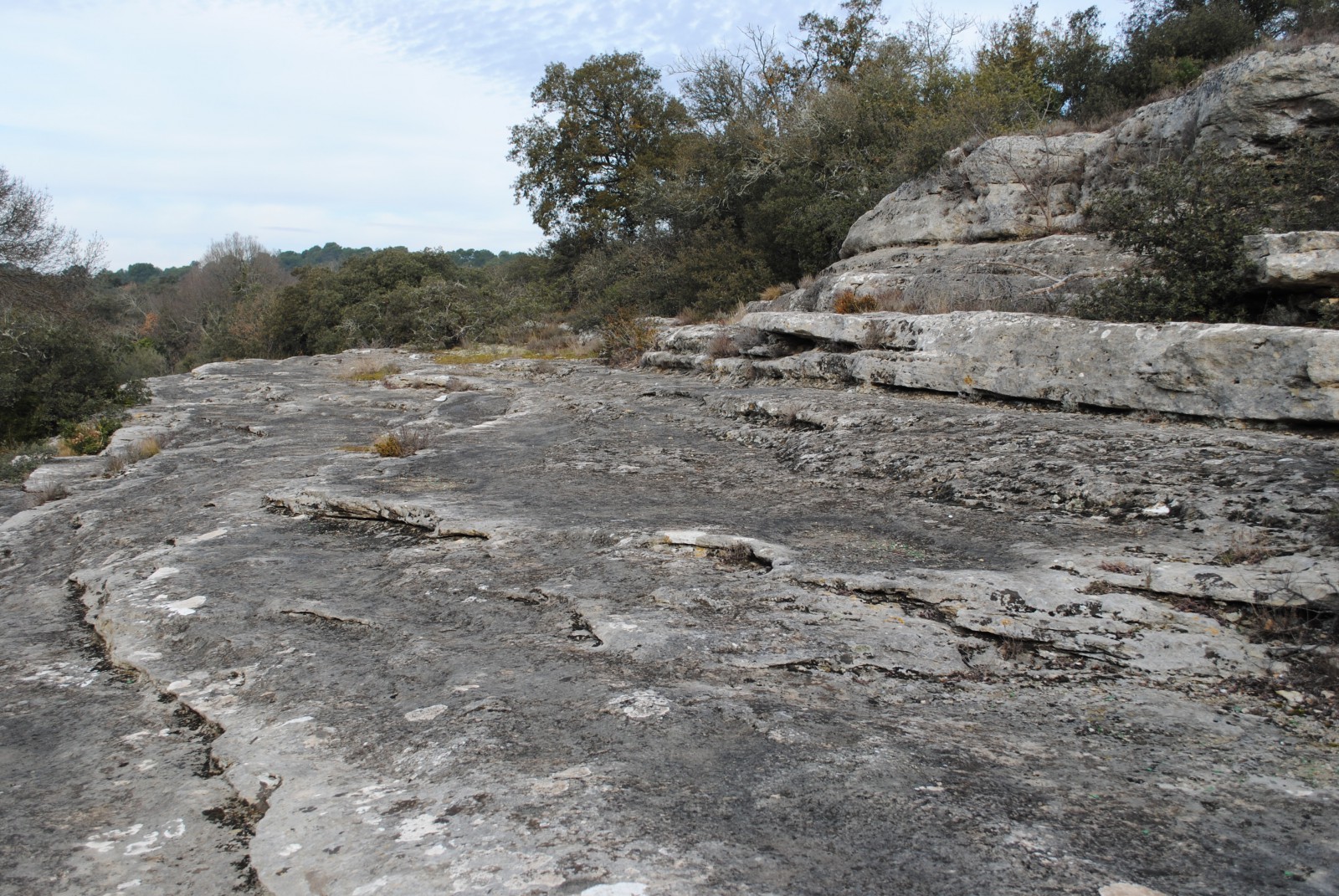 Longer les strates au dessus de la rivière Bénovie.