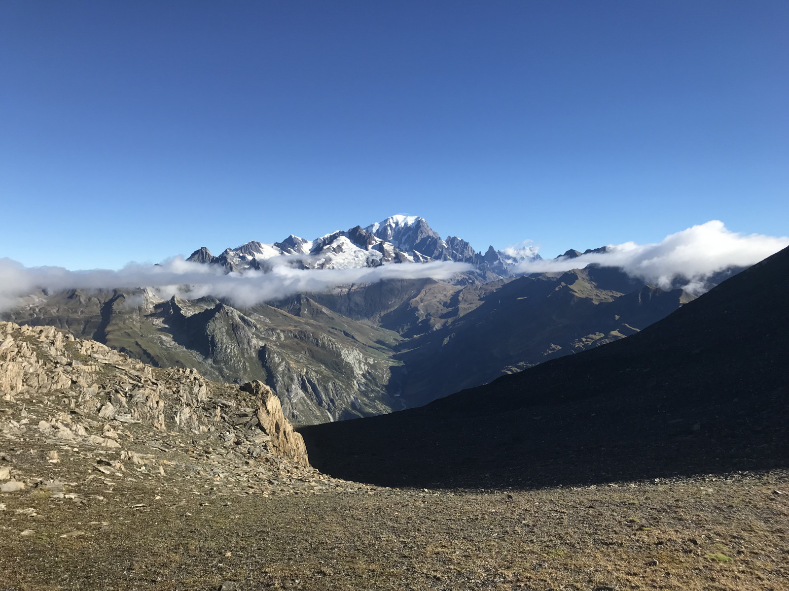 Mont Blanc et Aiguille des Glaciers vus de l'épaule en montant