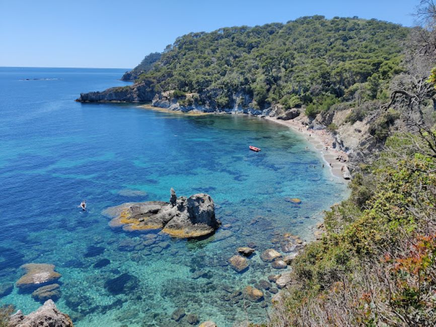 Jolie vue sur la plage, avec sa formation rocheuse mise là pour le premier plan.