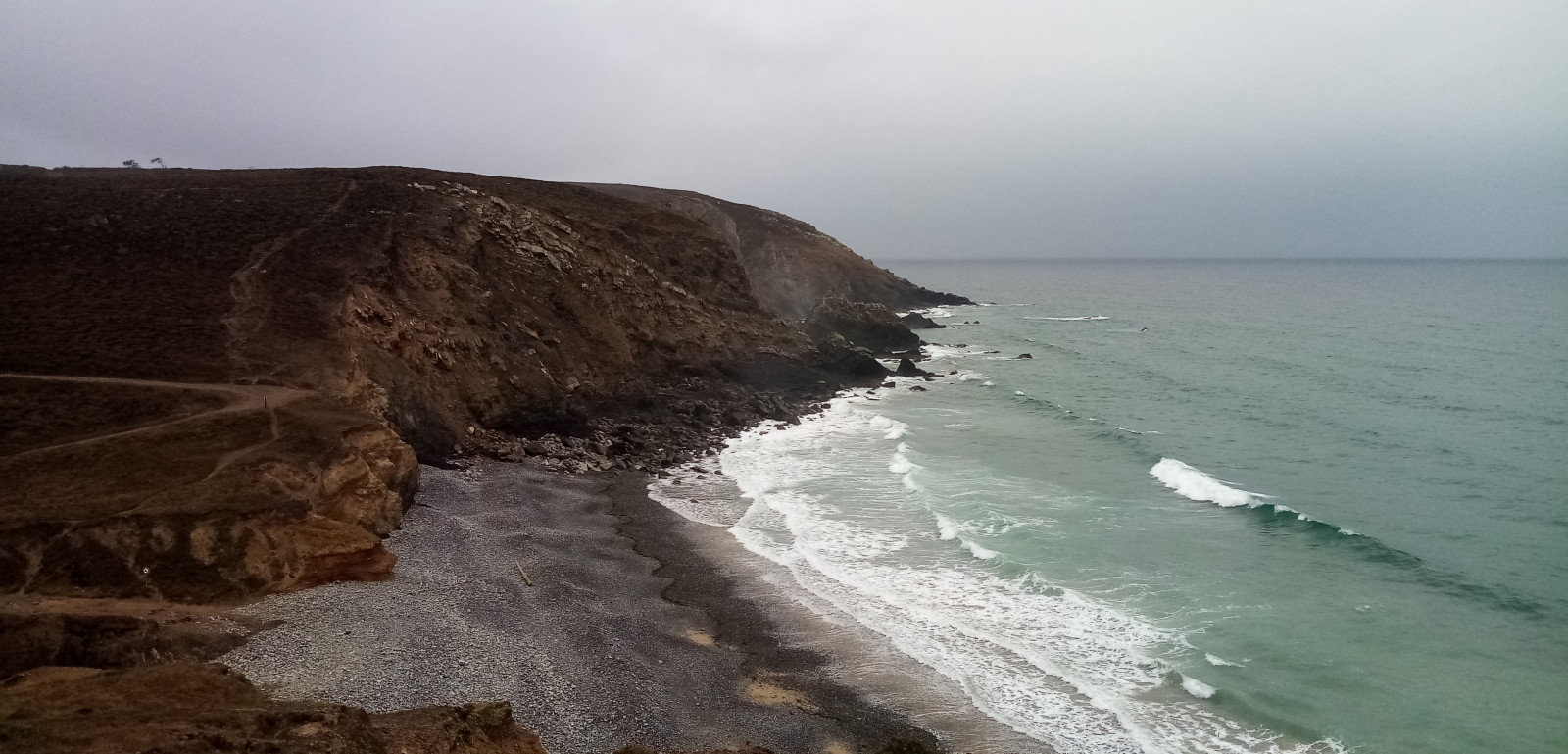 Plage de galets vue avant d'y descendre (août 2022).