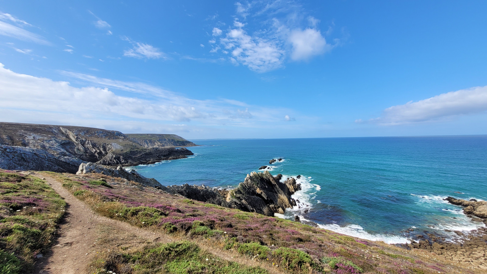 Superbe vue vers le large avec au premier plan une côte déchiquetée au niveau du Beg ar Choubez et Persig.
