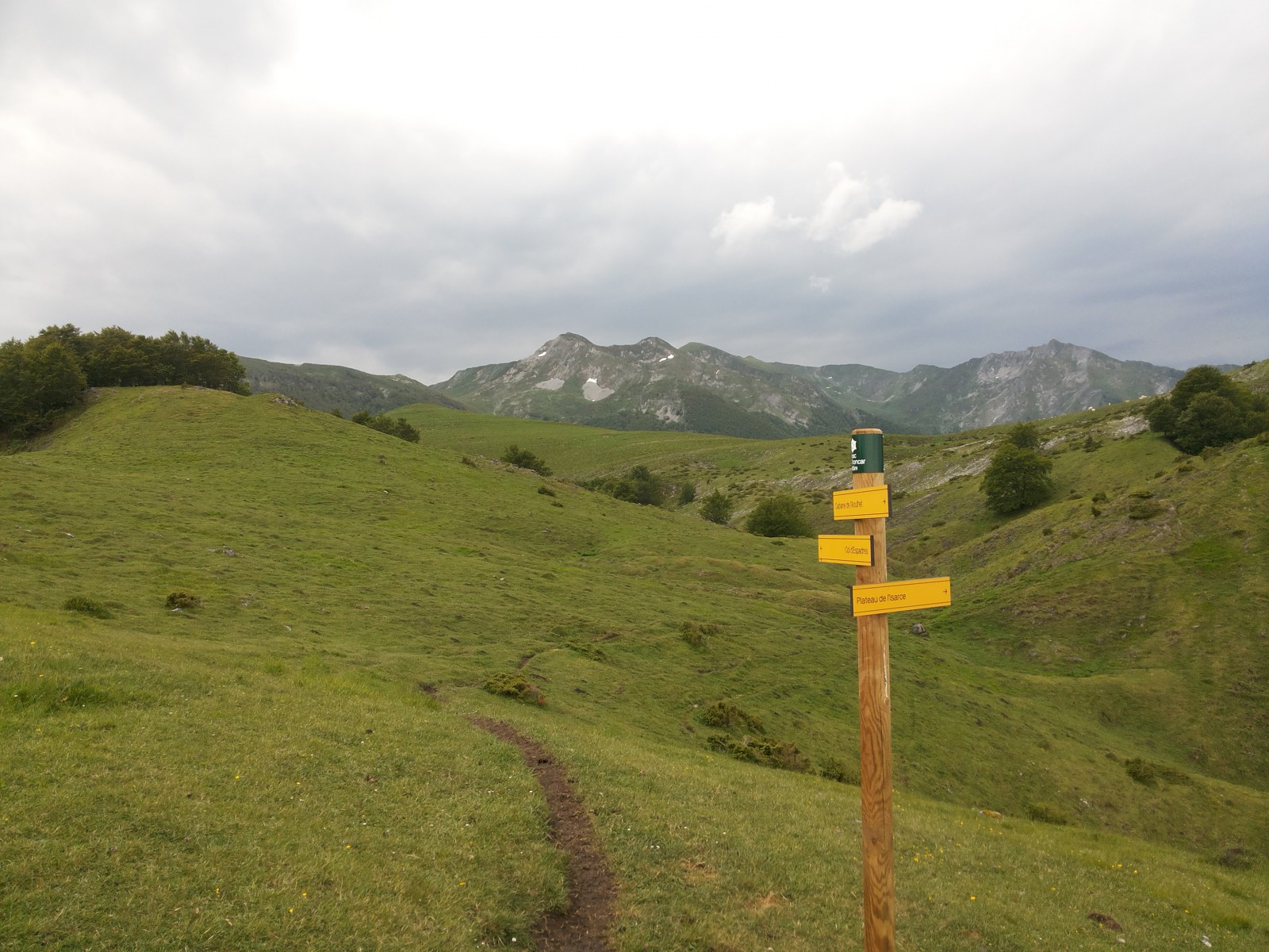 Sur la droite, le sentier vers le plateau de l'Isarce (par la route des crêtes), passant par le Soum de la Génie Braque