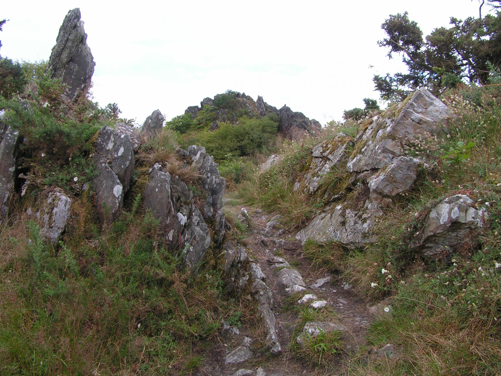 La montée s'effectue entre les blocs déchiquetés où fleurit la bruyère.
