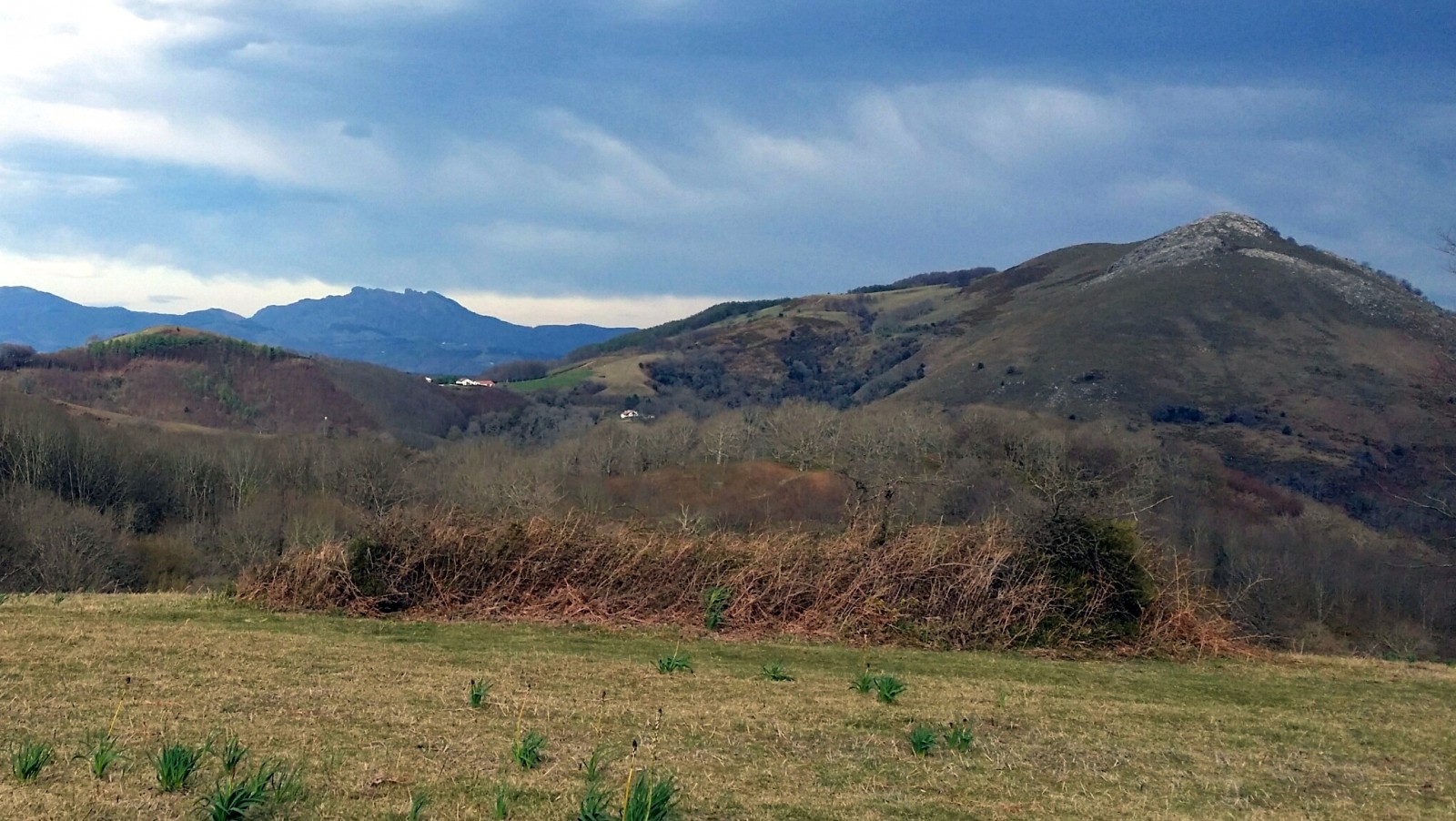 Au centre la Venta Lizaieta située au point de départ, à droite l' Ibantelli et tout au fond Les 3 Couronnes.