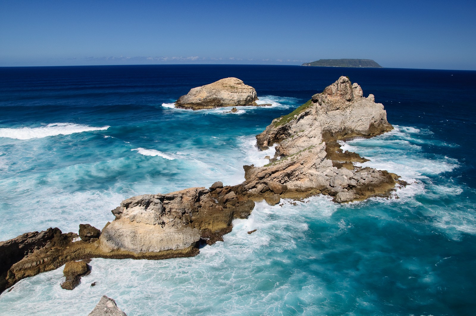 En haut de la pointe des Châteaux, la vue vers la Désirade.
