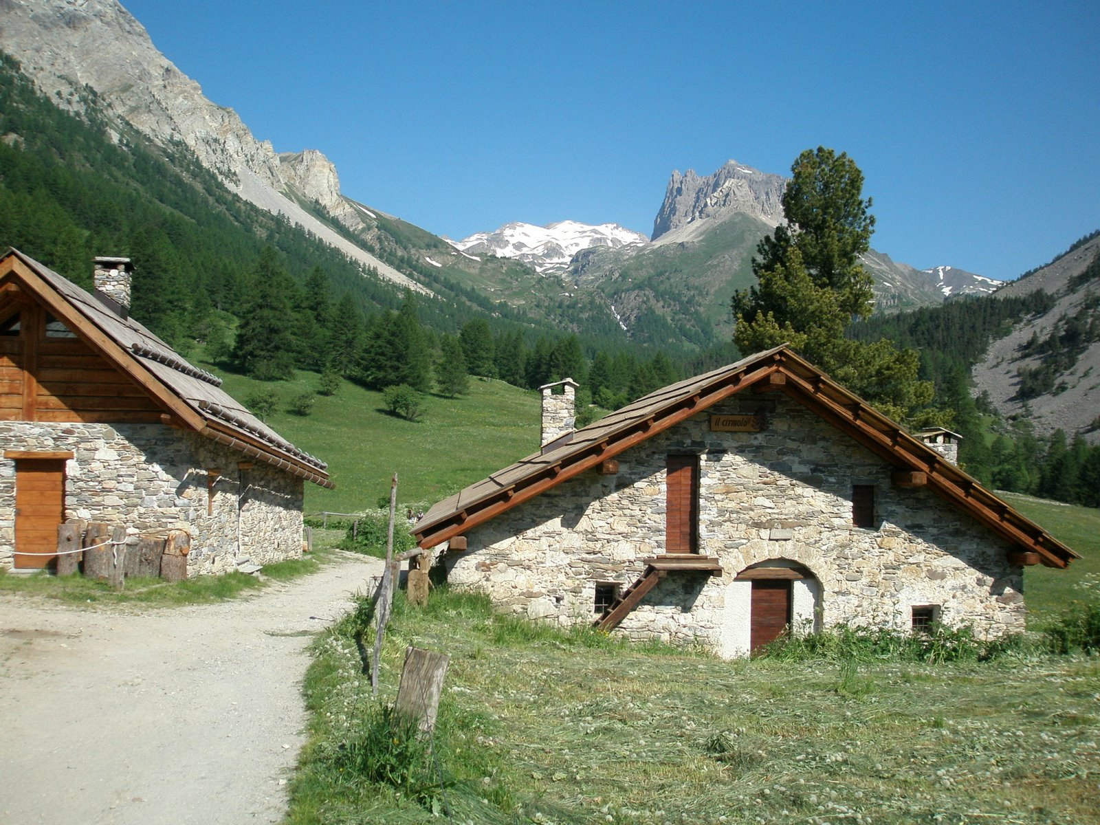 Ce n'est pas sur le parcours, mais voici la vue depuis le hameau italien des granges de la Vallée Etroite à 1750 m. Le Grand Serru 2867 m à droite et le Thabor 3178 m à gauche encore enneigé ce 28 juin.