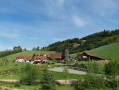 (7) Passer devant la ferme, et continuer sur le chemin qui longe d'abord les vignes, puis entre dans la forêt. Croiser un premier chemin, puis dans le virage suivant, en épingle, continuer la montée sur le chemin à droite. Un peu plus loin, il tourne à gauche pour rejoindre, plus haut, la Pia-Hütte, aire de repos très agréable avec abri et bancs.