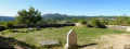 (8) Au croisement en haut de la côte, quitter le GRP® (Rouge/Jaune) pour prendre le sentier à droite qui part vers le Sud. Il dévie rapidement vers le Sud-Est et vient se fondre dans une piste. Il descend alors fortement, puis se calme en s’orientant Sud-Ouest et rejoint un croisement de chemins.