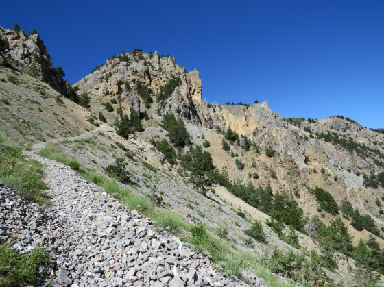 Vue sur le sommet des Anges et route militaire au point 9 pour retour par l'itinéraire de l'aller