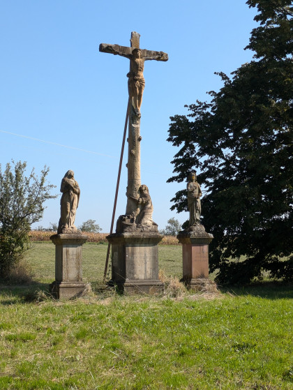 Avec, de droite à gauche, son église, sa mairie-école et son monument aux morts.