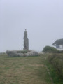 (4) Tourner à droite et faire attention dans le virage sans grande visibilité pour les voitures. À la prochaine intersection, tourner à gauche puis encore à gauche. Rejoindre un hameau et rester à gauche sur la route encore quelques mètres. Juste avant la haie d'une habitation, emprunter le chemin à gauche qui passe entre les champs. Rejoindre une petite route et tourner à droite puis continuer en face en direction du grand menhir christianisé (croix au sommet).