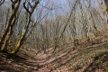 (5) Prenez ensuite le chemin qui monte sur votre gauche et qui est très raviné par les pluies. Suivez-le jusqu'à déboucher sur une route goudronnée. Suivez-la alors à gauche, puis prenez le premier chemin à droite. Au carrefour, prenez à droite puis, peu après, encore à droite.