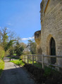 (7) Bifurquer à la 1ère rue de droite, au carrefour continuer en face Rue De La Mare Capelle puis virer aussitôt à droite sur le sentier d'où l’on aperçoit le château. Parvenir face à sa grille principale.