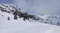 (4) En orientation Ouest, cheminer dans la neige, en respectant la signalisation matérialisée par les piquets mauves. Progresser en direction du Speichersee (Réservoir d'eau) à Schneebodu. Juste avant le lac croiser une piste d'hiver qui vient de Chüestall.