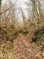(5) Devant la maison, prendre le sentier sur la droite. Poursuivre en sous bois tout droit, en descente régulière jusqu'à la D584.