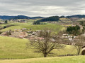 (3) Poursuivre par le chemin de gauche, longer la lisière d'un bois. Au goudron, prolonger à droite (Chemin de la Croix de Montagny) et atteindre des bâtiments au carrefour de la route desservant le hameau de la Longère.
