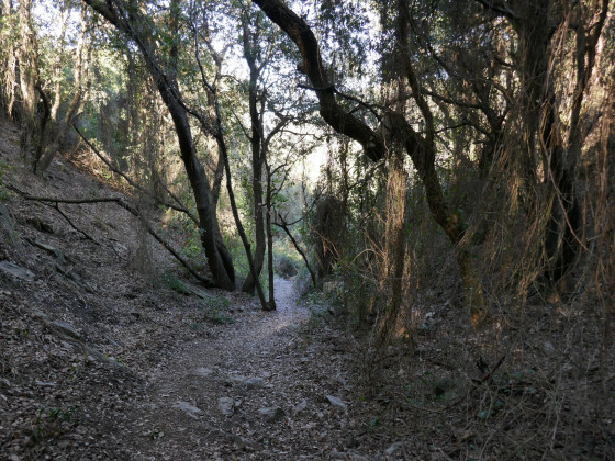 Quittant le piste de la Lèque, on monte vers la crête par un sentier qui court sous le maquis.