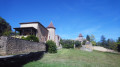 (10)Laisser sur la gauche un calvaire et descendre le vire-vire empierré et glissant qui passe sous le donjon du château et débouche sur une rue. Prendre cette rue à droite, passer sous la porte fortifiée, reste du mur d'enceinte du village. Revenir au parking (D/A).