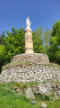 (21) Au panneau "Crêt de la Madone", suivre la destination la Rivière. Descendre le sentier qui passe à côté de l'imposante statue de la Vierge puis, par quelques lacets, parvenir à une intersection plus bas. Tourner sur le sentier à gauche. Remonter légèrement, tout en virant progressivement à gauche, pour redescendre sur la route D113. L'emprunter par la droite, et la quitter 100 m plus loin, juste avant son virage à droite, pour un sentier descendant sur la gauche. Après un passage en sous-bois, tourner à gauche sur un chemin dévalant le coteau. Tourner à gauche sur la route D489 et gagner une intersection.