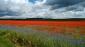 (7) À la route, prendre à gauche. Passer devant l'église (eau au cimetière) et prendre à gauche au carrefour. Aller à l'aire de pique-nique où il y a un panneau d'informations et une très belle vue.