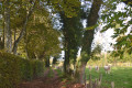 (2) Continuer tout droit en légère descente. Au virage à gauche, s'engager à gauche sur un chemin herbeux et marécageux au début, qui monte régulièrement. Traverser une petite route qui mène à une ferme et continuer tout droit. Le chemin poursuit sa montée et atteint une autre route.