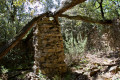 Continuer sur la piste (marques Jaunes). Une seconde ruine se trouve une cinquantaine de mètres à droite après la précédente. Son accès se repère au niveau d'un rocher avec une marque jaune et un tronc coupé