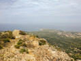 (3) Au niveau de la Chapelle Notre-Dame de Stella, continuer à monter le fond du vallon. Passer une courbe à gauche et dans le virage à droite suivant, virer à droite sur le chemin. À la patte d'oie, poursuivre à droite pour monter au Capu Bracajo. Attention, il n'y a pas de sentier sur la fin. Mais on peut atteindre un surplomb rocheux qui donne une belle vue sur le golfe de Calvi et la plaine de Calenzana.